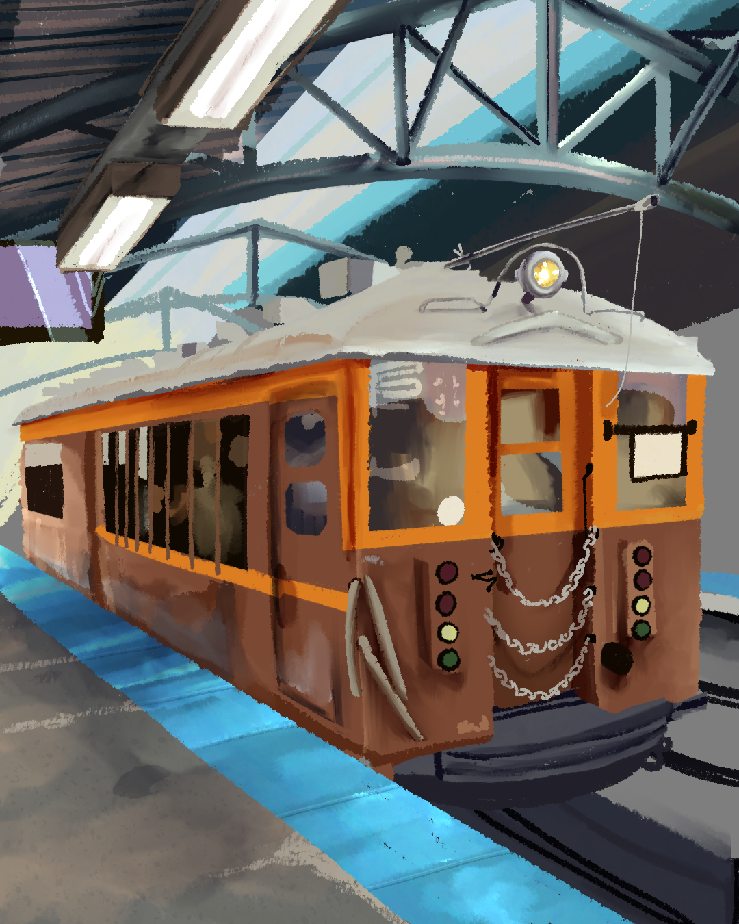 Here's a collection of a few pieces I am working on currently ✨ A lighting study, an illustration of when I saw the vintage CTA train back in October, and some sketches for a zine idea + trying to figure out a submission for a magazine. Are there any you wanna see finished? 🚂